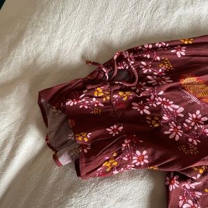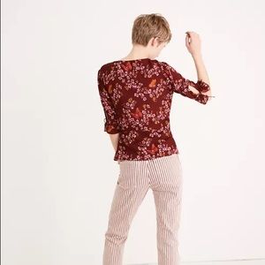 MADEWELL tie sleeve wrap top in the color “butterfly sanctuary”. Super cute, EUC. A bit wrinkly from sitting in my closet. No stains or rips!