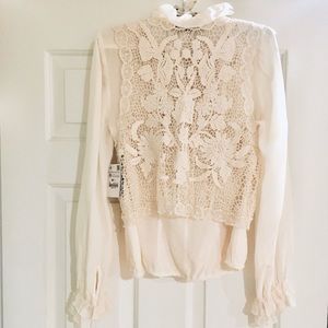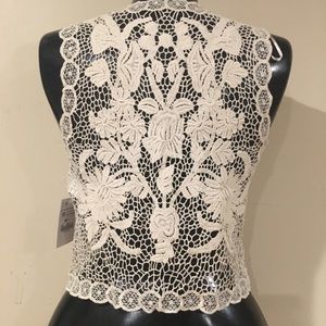 Absolutely NEW! Very delicate crocheted lace and knitting. It can be worn on many blouses or T-shirts. Colour is ivory.