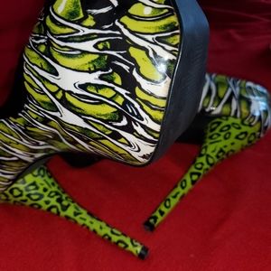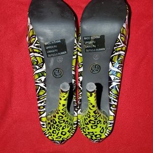 Size 10, 5in heel, green zombie leopard print