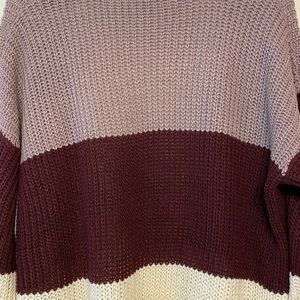 Colorful blocks of color on this multifunctional cozy sweater