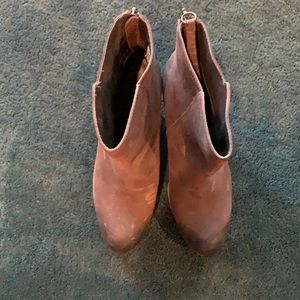 Ralph Lauren denim and supply boots with natural looking scuffing on the surface. The heel was too high for me so I never wore them. Heel measures 3” in back to ground.