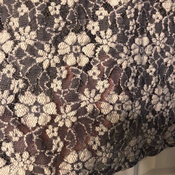 Beautiful long sleeve top by Anthropologie. Size x small. Gray and white flower patterns. This shirt does have gaps in the pattern when skin can be seen (by design). So we’re alone for a racy look, or plaid with a tank for a more modest look.