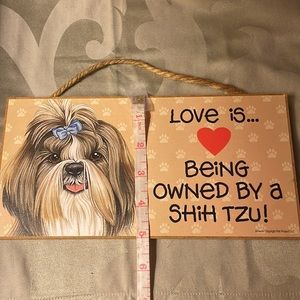 New with out tags. Cute canvas tote for all dog lovers. Wooden sign that hangs up with jute. It says love is being owned by a Shih Tzu. Made by Love & laughter wooden signs. See pictures for measurements on sign.