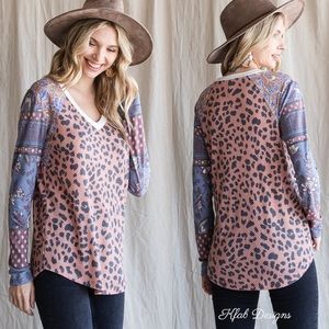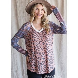❤️NEW! V Neck Color Block Floral/Animal Print Top!