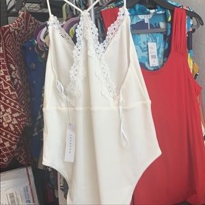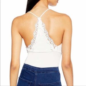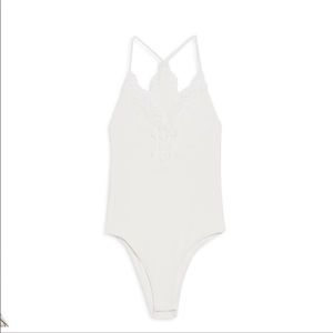 Topshop lace trim strap ribbed bodysuit