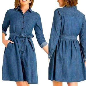 Meet your three-season work dress! This one’s a Draper James fall staple. We love a good chambray dress for any occasion, but thanks to long sleeves and a button-down collar, this piece will transition effortlessly from the office (or interview!) to your next event. Swipe on your favorite red lipstick to complement this look: 100% Cotton