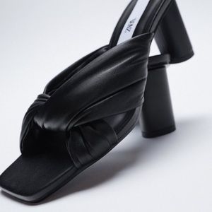 Zara New Black Quilted Leather Mules Shoes, nwt
