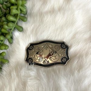 Belt Buckle Floral Silver & Black Rodeo Western