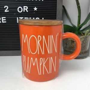 New Rae Dunn Mornin’ pumpkin mug with topper