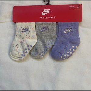 Nike Baby Girl 3 Pair No Slip Ankle Socks ~ White, Purple, & Gray ~ 6-12 Months.