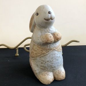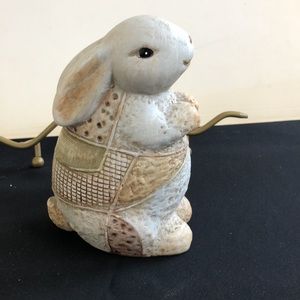 This item is a decorative rabbit figurine, likely made from ceramic or resin, featuring a rustic or vintage aesthetic with a patchwork-style design. The various sections have a textured, aged finish, resembling fabric patches, and the overall look is consistent with cottagecore or farmhouse decor.