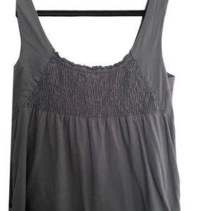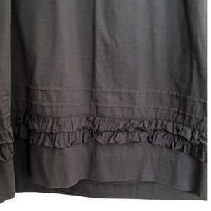 Adorable Maeve sleeveless navy dress. Features front pockets, armpit to armpit stretch, & bottom ruffle detail. In good pre-loved condition, minor discoloration spot on front (depicted in last picture). Materials 100% cotton. Size small.