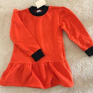 Cute little Orange dress with black trim. I was going to embellish it for Halloween but it’s too small for my granddaughter. It’s marked 5/6. Just the right amount of puff on the shoulders. Have fun with it. Your little girl would love to help and you’ll create a lasting memory. Iron on a smiley face and you’ll be ready for Halloween 🎃 Am I asking too much??? Make an offer!!!!