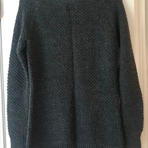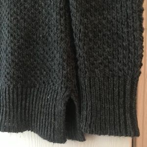 Charcoal gray tunic-style sweater dress. New with tags, never worn. Ribbing detail on the sleeves and around the bottom of the sweater, cable knit design around the neckline, and split hem.