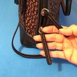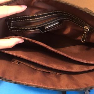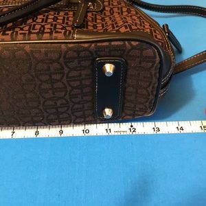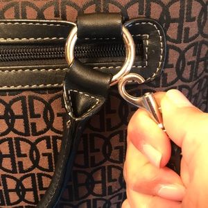 Beautiful hardly used GIANI BERNINI fabric bag with removable shoulder straps. Very roomy bag With the few compartments inside. Zippered pocket in the front.