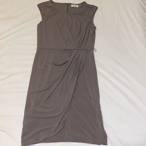 Tan lightly worn Calvin Klein dress. Missing belt so 2 belt loops unused are shown. Great business professional outfit.