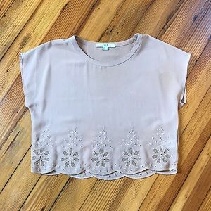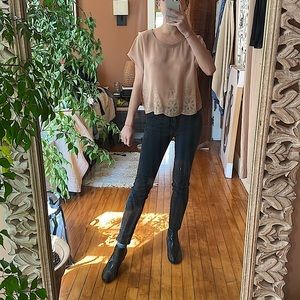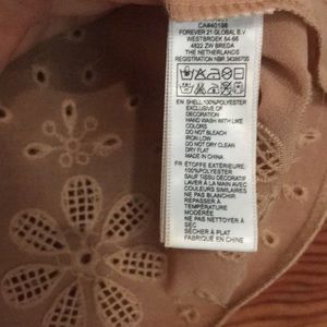 Super cute sheer tan Forever 21 top with scalloped bottom. Looks great with bralette underneath.
