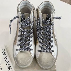 NIB GOLDEN GOOSE SLIDE SNEAKERS EU 37 US 7 GLITTER NEUTRAL LEATHER LEOPARD.