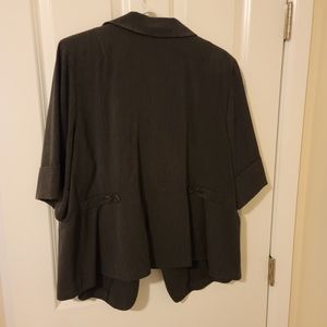 Good Quality Lane Bryant Short-Sleeved Suitjacket and Pants in size 22 - and it looks great on chubbier girls! I used this a lot when I was having face-to-face meetings, but it needs to be cleared out now as the pandemic comes to an end and it no longer fits me. There is some light wear, but nothing that is overly noticeable in my opinion, and I've tried to highlight any noticeable wear in the pictures. The pants are a nice loose leg fit and very comfortable.