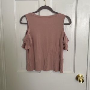 Large Pink Ribbed Cold Shoulder Top American Eagle