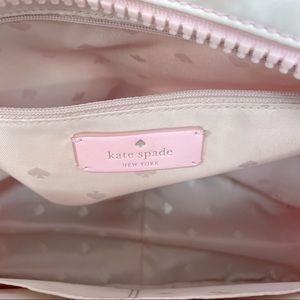 This nearly-new Kate Spade bag does double duty with a wide adjustable and detachable strap. The inside features jacquard lining with three pockets (one is zip). Outside are two front pockets and one back seam zip pocket. Lots of room for anything and everything.