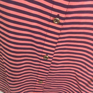 Banana Republic Small Shirt Pink Blue Striped Button Down Silk Blouse Womens
