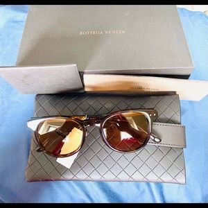 Bottegga Veneta classic Havana sunglasses. These have a dark tortoise frames with light brown lenses and offer 100% UV protection. Made in Italy, their size is 58/15/150mm. Brand new in box never worn! These glasses look good on any face type! Comes with cleaning cloth, case and original box.