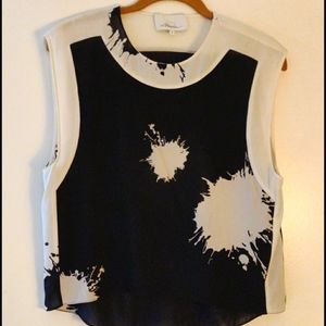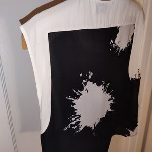 Fashion forward paint splash design. Sophisticated ivory, black and taupe tones. Lightweight, semi-sheer. In very good used condition.