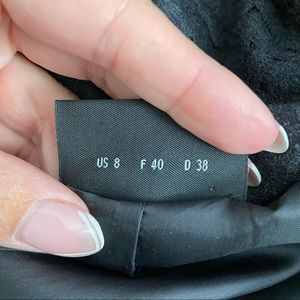 Size 40 is a US 8. Measurements are approximate; taken while garment is lying flat: 18” across chest, 21” length, 24” sleeve length.