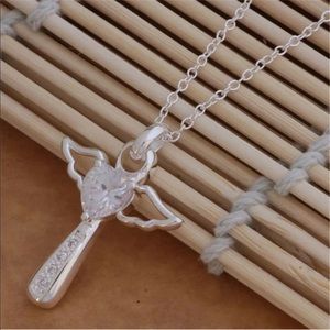 Sterling Silver Crystal Cross Angel Wings Necklace NEW