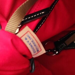 - Interior lined w/ signature red fabric, front-wall slip pocket, back-wall slip & zip pockets, key keeper.