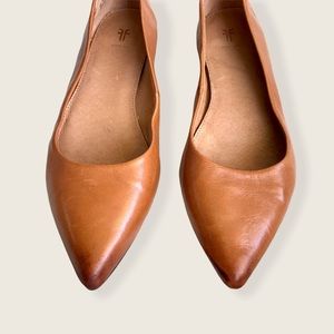 Frye Sienna Cognac Leather Ballet Pointed Flats