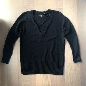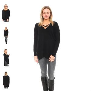 Sweater - high low cross cross front knit top in black by lush. Only once once! Super comfy can be worn causally with leggings or with jeans. You can also dress it up easily! It is a US size 2 (small).