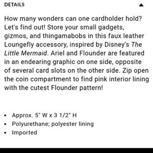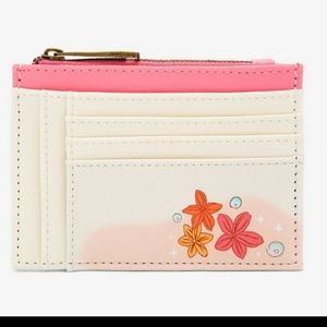 New Loungefly Disney's Little Mermaid Ariel and Flounder floral embroidery mini backpack and coin cardholder purse wallet set. See pictures for more details and measurements.