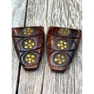 Here for your consideration are a nice pair of Art Deco wood fur clips. They measure 2x1.5". The clips are in good working order and the set is in good antique condition.