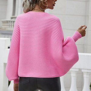 PINK Ribbed Knit Batwing Sleeve Sweater