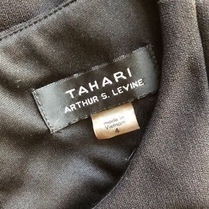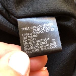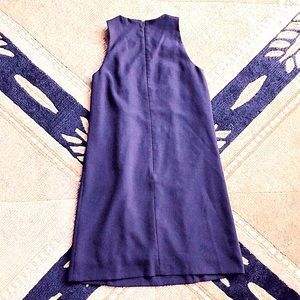 Black dress is in great condition! Has scalloped trim on the front and a back zipper. Slight stretch to the material.