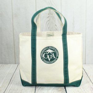 LL Bean Boat & Tote Cream Canvas Green Trim Embroidered Tote Handbag