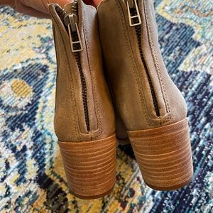 Madewell Pauline ankle booties with back zipper. Gray/brown Nubuck leather. Size 6. Like new! Worn once to a wedding rehearsal indoors! Last pic - not the same color of Pauline boot, but included to show fit/style.