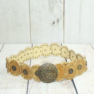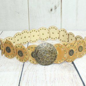 Classic Brown Leather Coin Studded Embellished Boho Morrocan Belt Size M/L