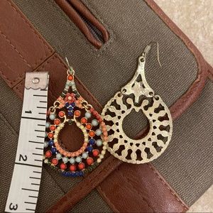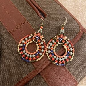 New York & Company Red & Blue Beaded Drop Earrings