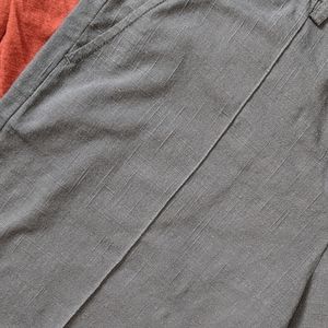This pair of wide leg pants is made of cotton/polyester/spandex blend in crash weave that has a natural looking texture. The center leg seam in the front panel gives the pants a sharp and stream lined look.