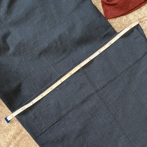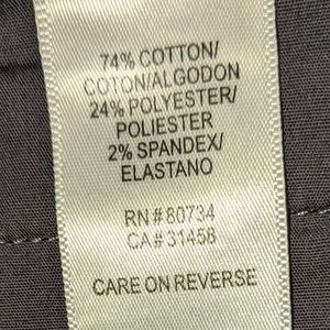 Wide belt loops, waist adjust button/tabs, leg hem slit