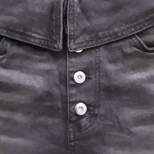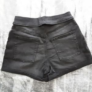 NWT black denim shorts, size 3, high rise stretch. Fold over waste, button fly.