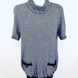 Moth Anthropologie Navy White Striped Margate Mock Turtleneck Pullover Sweater Top Size M.