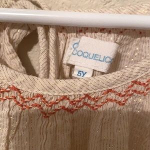 Coquelicot 5Y gold fluttery girls top with embroidered neck