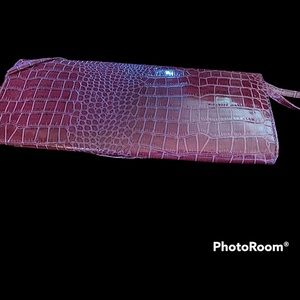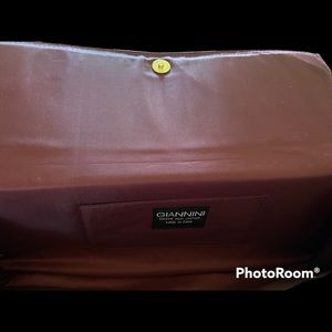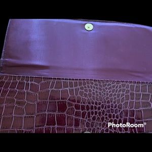 Vintage Giannini Faux Leather Burgundy Clutch, small pocket in interior. No exterior pockets. Handle strap 6” long. Magnetic closure.