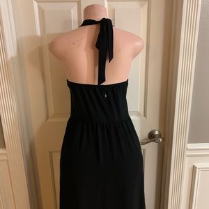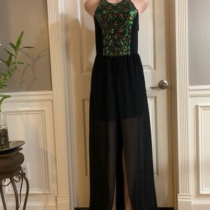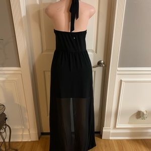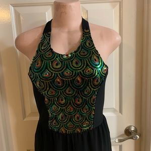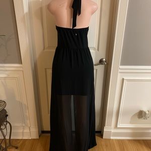 Women’s junior halter high- low black dress size (M) sequins top adjustable straps low back 95% polyester 5% spandex