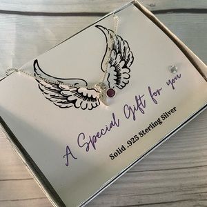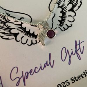 Beautiful Special Gift with this minature cute 100% Solid .925 Sterling Silver Miniature Angel Wing Necklace, personalized with your loved ones Birthstone to choose in our selection. Featuring a TINY 12mm Sterling Wing Charm, Sterling 1mm Cable and a Tiny 6mm Swarovski Birthstone.