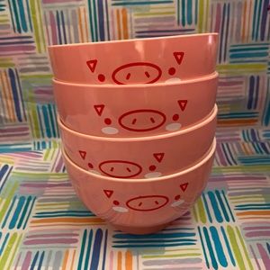 4 pink pig design daiso japan lacquered bowl
